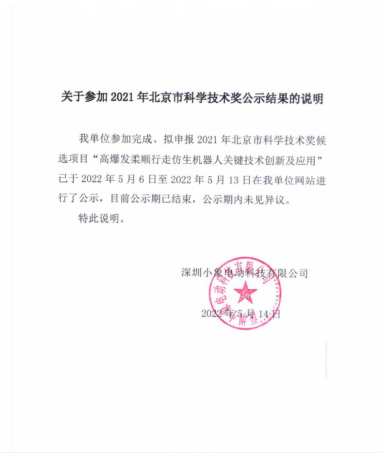 關于參加2021年北京市科學技術獎公示結果的說明